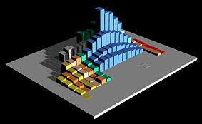 Density [kg m-3] plotted against atomic number as 3D bar chart