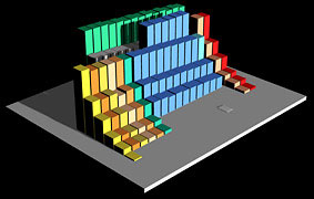 Relative atomic mass plotted against atomic number as 3D bar chart
